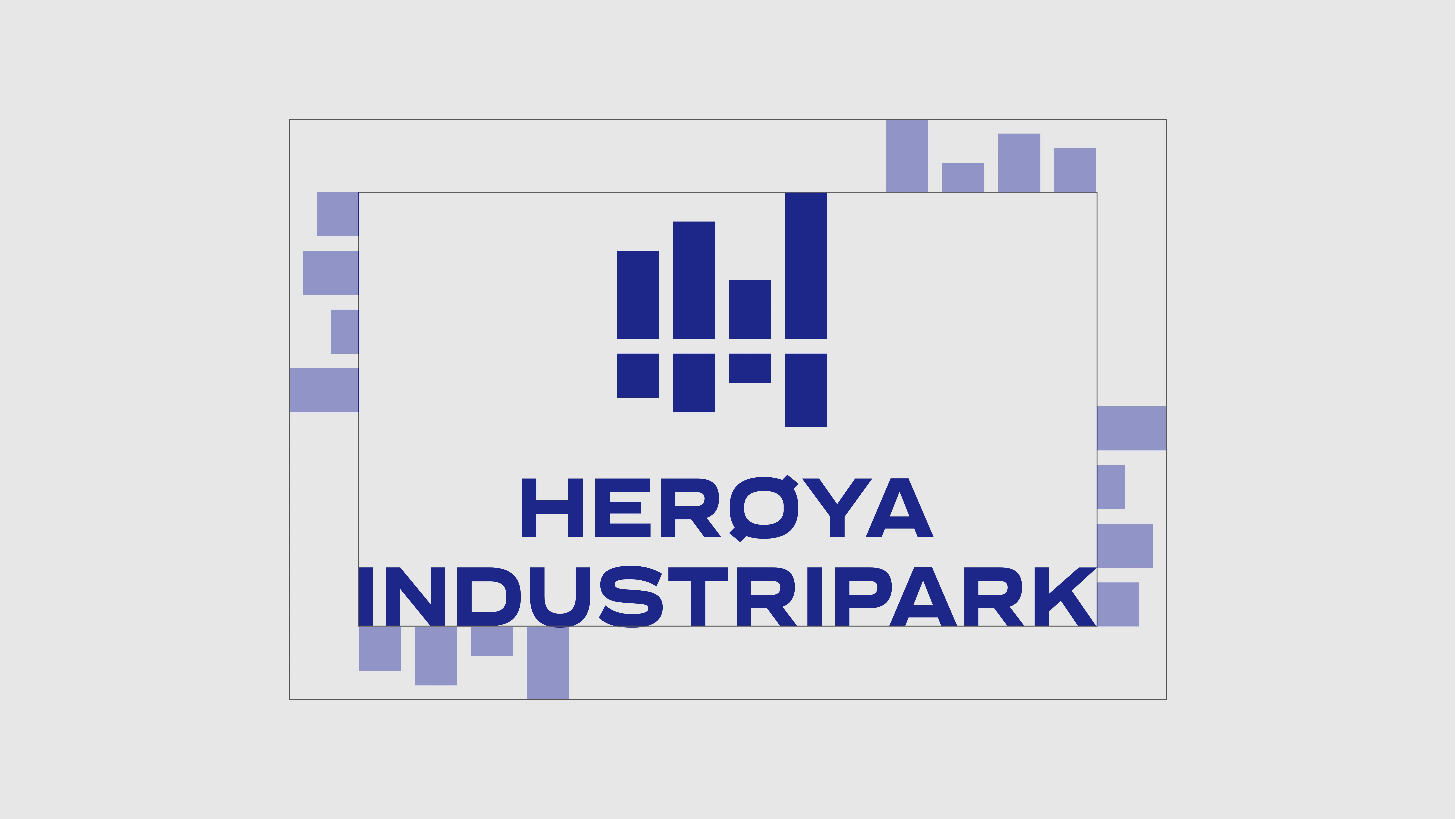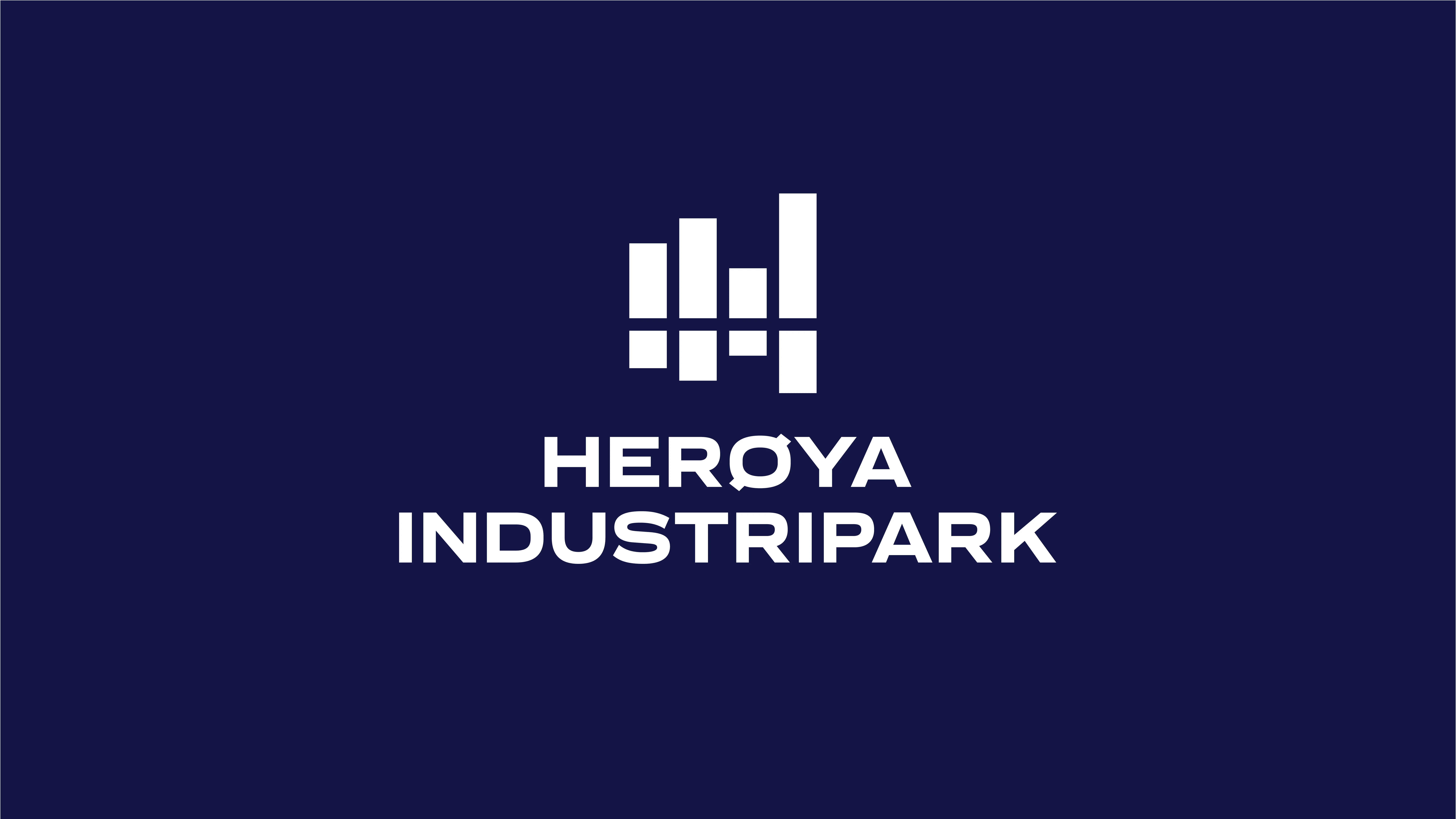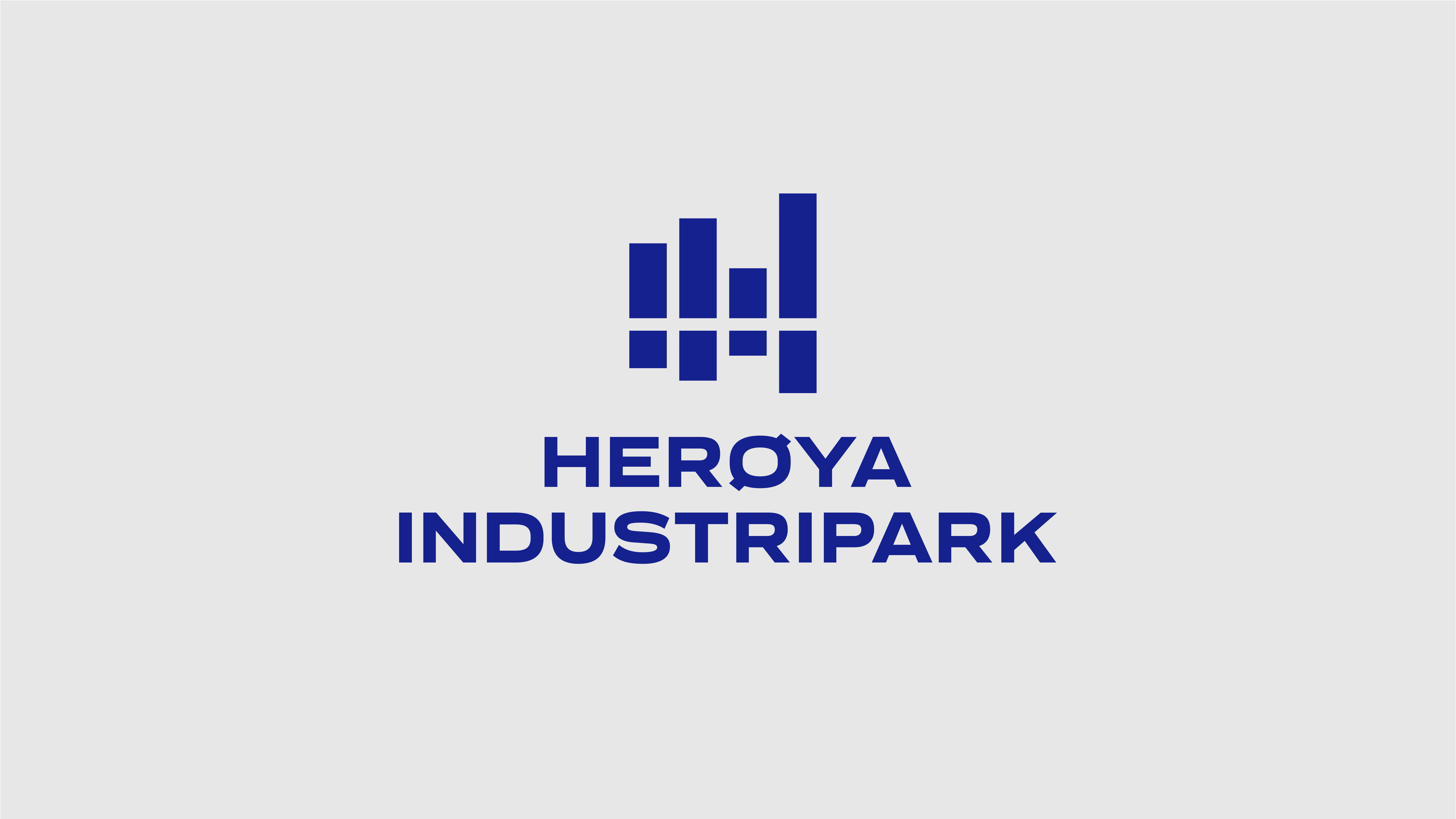 Logoen til Herøya Industripark finnes i to varianter – stående og liggende. Den stående varianten finnes også med tagline og nettadresse. Logotypen er satt i skrifttypen Praktika, og har også symbol som representerer industribyggene som speiler seg i vannflaten.