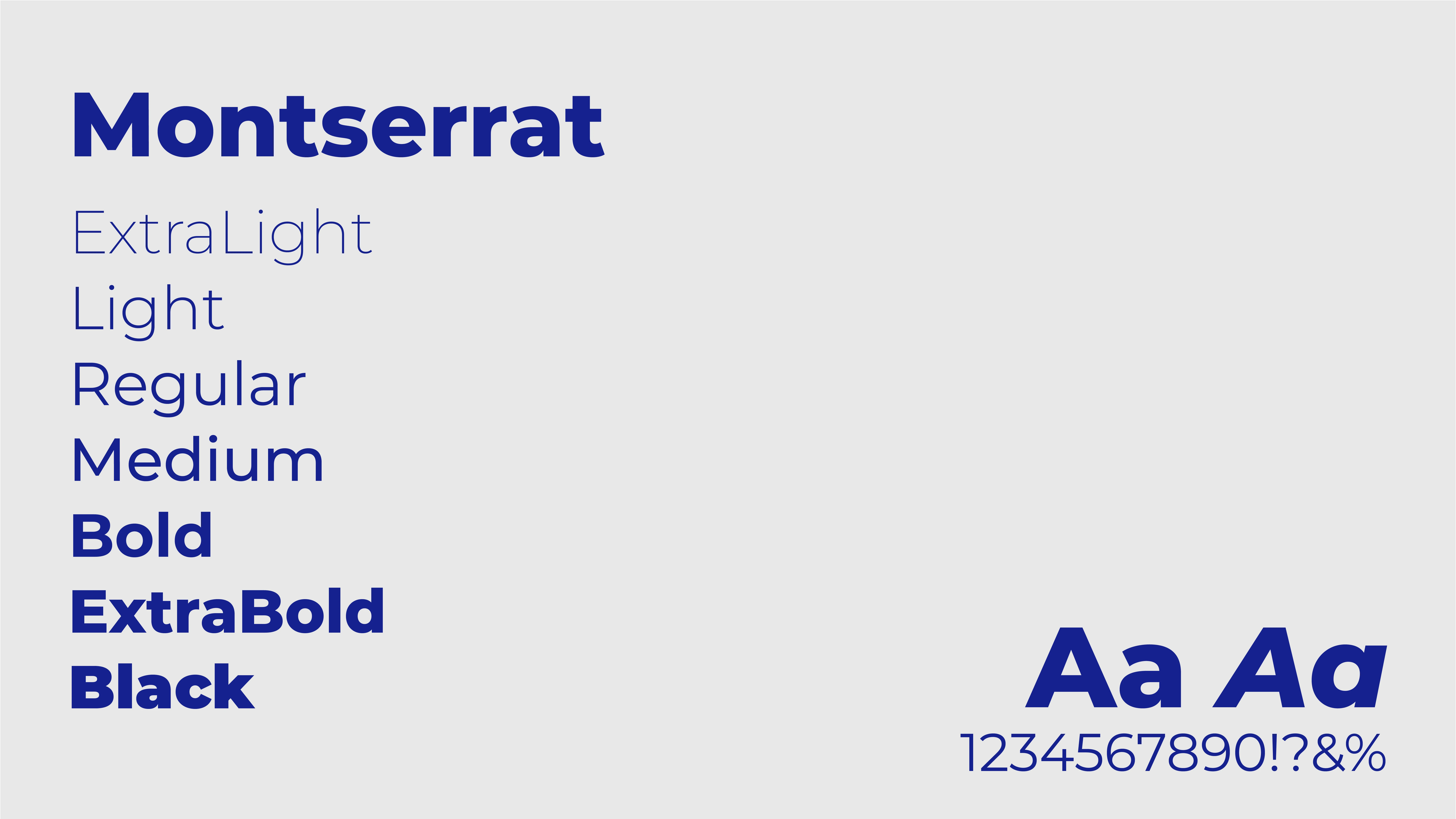 Montserrat er en Google font som har lignende formspråk som Praktika, og brukes der Praktika ikke er tilgjengelig, som i nyhetsbrev og i Office applikasjoner som PowerPoint og Word. Fonten har et bredt utvalg av vekter, og er gratis å laste ned og installere hos Google Fonts.